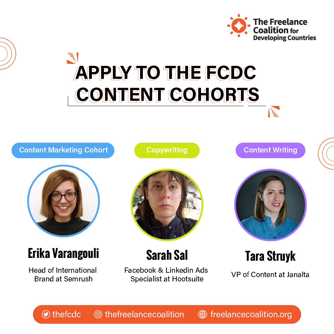 - Content Marketing cohort taught by Erika Vranguli the VP of International Brand at Semrush: https://freelancecoalition.typeform.com/to/h1Kw5itB